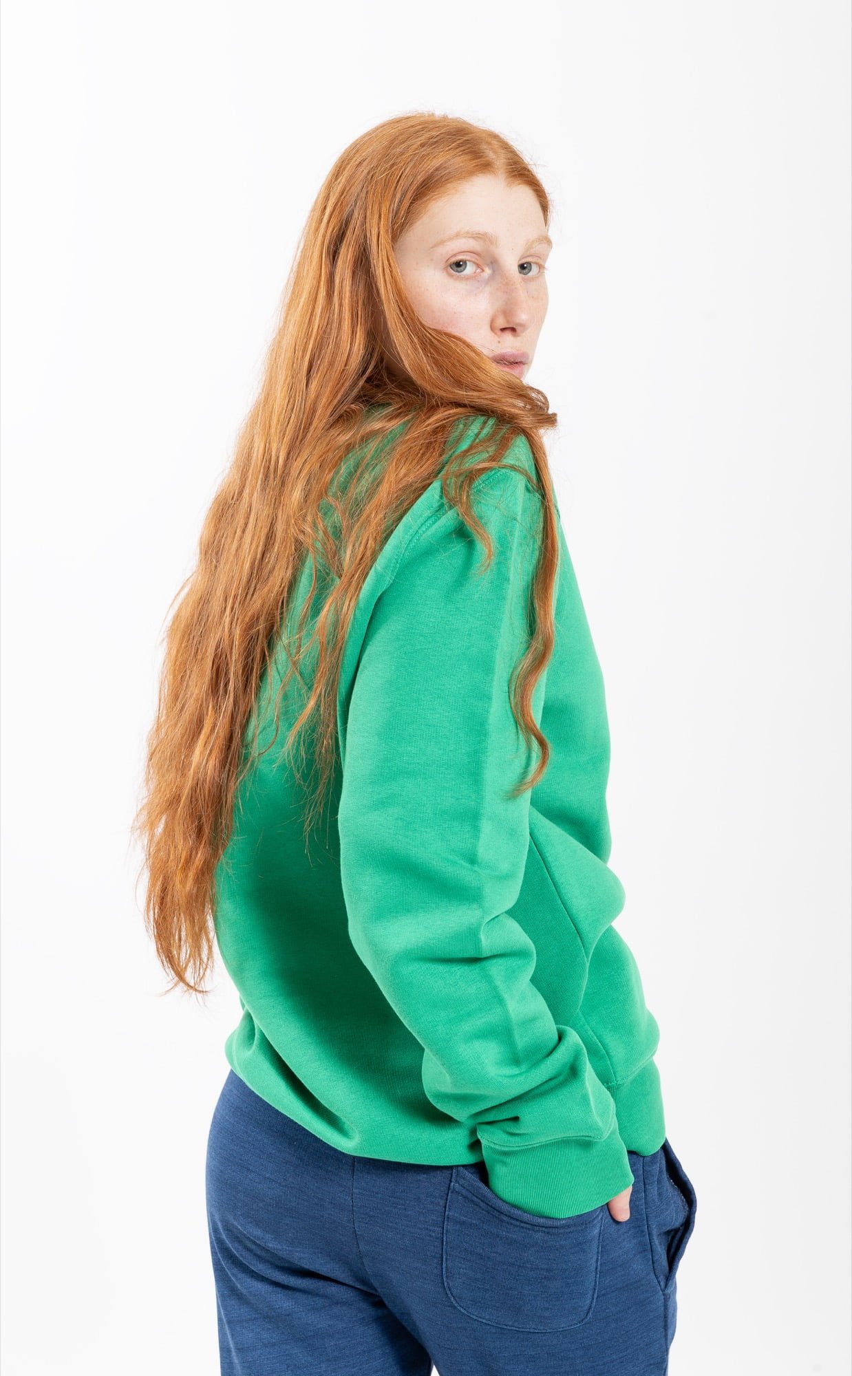 Felpata 85% cotone biologico filato e pettinato, 15% poliestere riciclato 350 GSM Maniche a giro